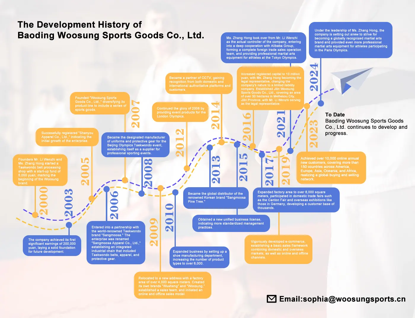 Woosung Sports Goods Co. , Ltd. ก่อตั้งขึ้นในปี 2549 และเป็นผู้ผลิตสินค้ากีฬาที่มีสิทธิ์นำเข้าและส่งออกอิสระ บริษัท ส่วนใหญ่ผลิตอุปกรณ์ศิลปะการต่อสู้เช่นเทควันโดคาราเต้มวยและยูโดรวมถึงเครื่องแบบเทควันโดอุปกรณ์ป้องกันเข็มขัดรองเท้าเครื่องแบบคาราเต้เข็มขัดอุปกรณ์ป้องกันถุงมือมวย นอกจากนี้ บริษัท ยังมีอุปกรณ์ศิลปะการต่อสู้ที่หลากหลายกระเป๋ากีฬาผลิตภัณฑ์โยคะและอุปกรณ์ออกกำลังกาย Woosung ยังให้บริการต้นแบบตัวอย่างและบริการประมวลผล OEM ในต่างประเทศทำให้เป็นตัวเลือกอันดับต้น ๆ สำหรับผู้ที่ชื่นชอบกีฬากลางแจ้ง
