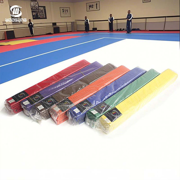 วิวัฒนาการของสีเข็มขัดคาราเต้เป็นผลสะท้อนโดยตรงถึงทักษะและการเติบโตทางจิตใจของผู้ฝึก เข็มขัด WOOSUNG ของคาราเต้ยึดมั่นในประเพณีศิลปะการต่อสู้อย่างเคร่งครัด โดยเสนอตัวเลือกสีที่หลากหลายสำหรับทุกระดับ เข็มขัดสีขาวเป็นสัญลักษณ์ของการเริ่มต้นและการเริ่มต้นใหม่ แสดงถึงความอ่อนน้อมถ่อมตนและความกระหายในความรู้ของผู้เริ่มต้น สีกลาง เช่น สีเหลือง สีส้ม สีเขียว และสีน้ำเงิน สอดคล้องกับความเชี่ยวชาญในเทคนิคพื้นฐานของผู้ฝึกหัดและความเข้าใจที่ลึกซึ้งในหลักการศิลปะการต่อสู้ เข็มขัดสีน้ำตาลแสดงถึงวุฒิภาวะและความมั่นคงในทักษะ ซึ่งเป็นก้าวสำคัญสู่ระดับที่สูงขึ้น และเข็มขัดหนังสีดำเป็นตัวแทนของความเหนือธรรมชาติและมรดก ซึ่งบ่งบอกว่าผู้ฝึกหัดเชี่ยวชาญเทคนิคหลักและเริ่มต้นการเดินทางครั้งใหม่เพื่อสำรวจแก่นแท้ของศิลปะการต่อสู้ สำหรับโรงฝึกที่มีข้อกำหนดสีเฉพาะตัว เรายังปรับแต่งสไตล์พิเศษได้ เช่น เข็มขัดทูโทนหรือแถบลาย โดยคำนึงถึงประเพณีของโรงเรียนศิลปะการต่อสู้ต่างๆ