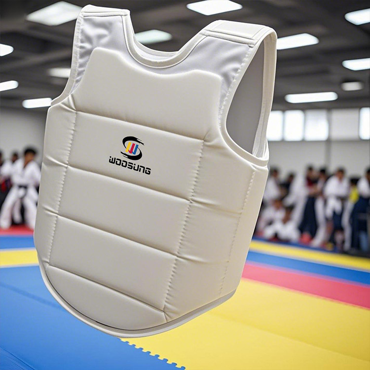 วูซอง ได้พิจารณาถึงคุณลักษณะของรูปร่างของผู้หญิงอย่างเต็มที่ในการออกแบบ PU Karate Chest Guard: