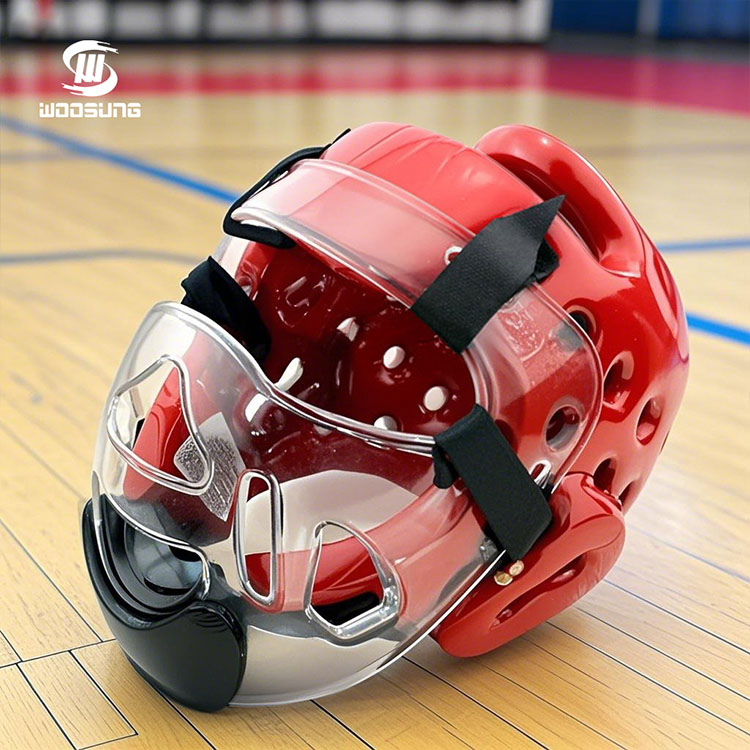 การ์ดป้องกันศีรษะเทควันโดพร้อมกระบังหน้าใช้การออกแบบแบบบูรณาการ ซึ่งผสมผสานอุปกรณ์ป้องกันศีรษะเข้ากับหน้ากากได้อย่างลงตัว เพื่อให้การป้องกันที่ครอบคลุมสำหรับศีรษะและใบหน้าของคุณ ไม่ว่าจะเป็นการกระแทกศีรษะหรือรอยขีดข่วนบนใบหน้าก็สามารถป้องกันได้อย่างมีประสิทธิภาพ แผ่นโฟมความหนาแน่นสูงภายในตัวป้องกันมีผลในการดูดซับแรงกระแทกได้ดีเยี่ยม ซึ่งสามารถดูดซับแรงกระแทกได้อย่างมีประสิทธิภาพและปกป้องศีรษะของคุณจากการบาดเจ็บ