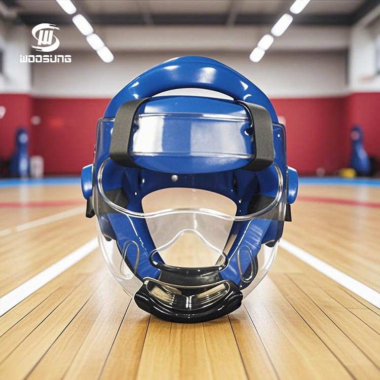 การ์ดป้องกันศีรษะเทควันโดพร้อมเทคโนโลยีเสริมหน้ากากช่วยให้มั่นใจถึงความทนทานและการป้องกันที่เชื่อถือได้ระหว่างการใช้งานในระยะยาว การป้องกันที่ครอบคลุมสำหรับนักกีฬา