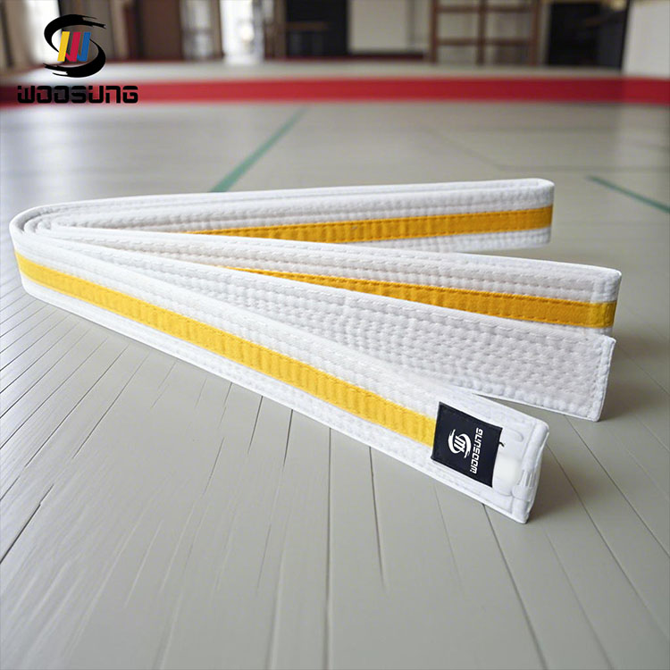 ในการเดินทางสู่ความก้าวหน้าของเทควันโด เข็มขัดไม่ได้เป็นเพียงสัญลักษณ์แห่งยศเท่านั้น แต่ยังเป็นเหรียญแห่งความอุตสาหะและการทำงานหนักอีกด้วย เข็มขัดลายเทควันโดสื่อถึงการเปลี่ยนผ่านสู่เทคนิคระดับสูง WOOSUNG ยึดมั่นในงานฝีมืออันเข้มงวดของแบรนด์เกาหลีที่มีอายุนับศตวรรษอย่าง "Pine Tree" โดยเลือกผ้าจากธรรมชาติเพื่อสร้างเข็มขัดระดับแข่งขันที่ให้การสนับสนุนอย่างมืออาชีพในขณะที่ยังคงความนุ่มนวลไว้