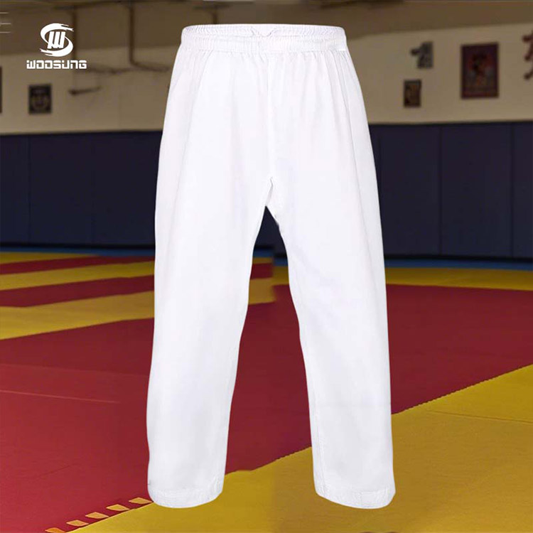 กางเกงขายาวใช้วัสดุแคนวาสทนการฉีกขาด 10 ออนซ์ ผสมผสานกับการตัดสามมิติแบบแผง 6 แผงตามส่วนโค้งของขา ซึ่งไม่จำกัดระยะการเคลื่อนไหวระหว่างกระโดดและแยกขากางเกง ขณะเดียวกันก็ป้องกันไม่ให้ขากางเกงขยับได้อย่างมีประสิทธิภาพ ขากางเกงมีดีไซน์แบบพับได้ ปรับให้เหมาะกับวัยรุ่นที่มีความสูงต่างกัน และใช้การเย็บเสริมเพื่อป้องกันการหลุดลุ่ยแม้จะซักซ้ำหลายครั้ง กางเกงยังมีกระเป๋าที่ซ่อนอยู่เพื่อความสะดวกในการเก็บของชิ้นเล็ก ผสมผสานการใช้งานจริงและความสวยงาม ช่วยให้นักศิลปะการต่อสู้รุ่นเยาว์สามารถฝึกซ้อมได้โดยไม่จำเป็นต้องพกอุปกรณ์จัดเก็บเพิ่มเติม